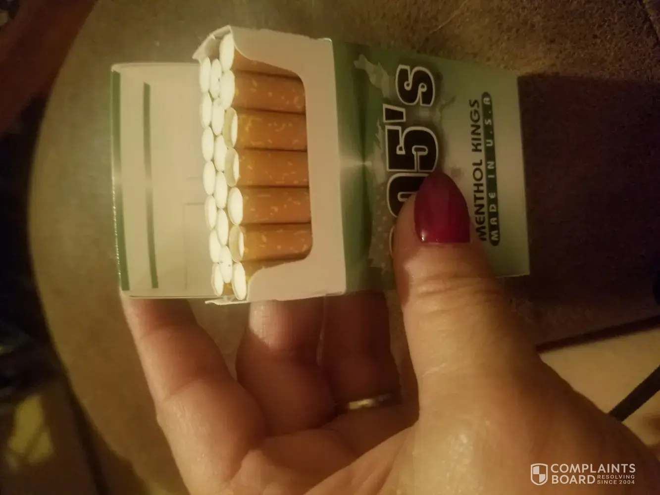 For years I have purchased a carton of 305 menthol gold 100's on a weekly basis. Two weeks ago I did the same. Opened the first pack, it was a white cigarette, lite it, it tasted stale. After looking at it more closely, I noticed it had a green ring at the filter line. Tried to take the 9 unopened packs back to the store. They could not take then back. So, I was out $40.00. I bought a couple of loose packs, which were fine. I did that for the rest of that week. The following week, went to buy another carton. And once again, got stuck with a carton of mislabeled and packaged cigarettes.