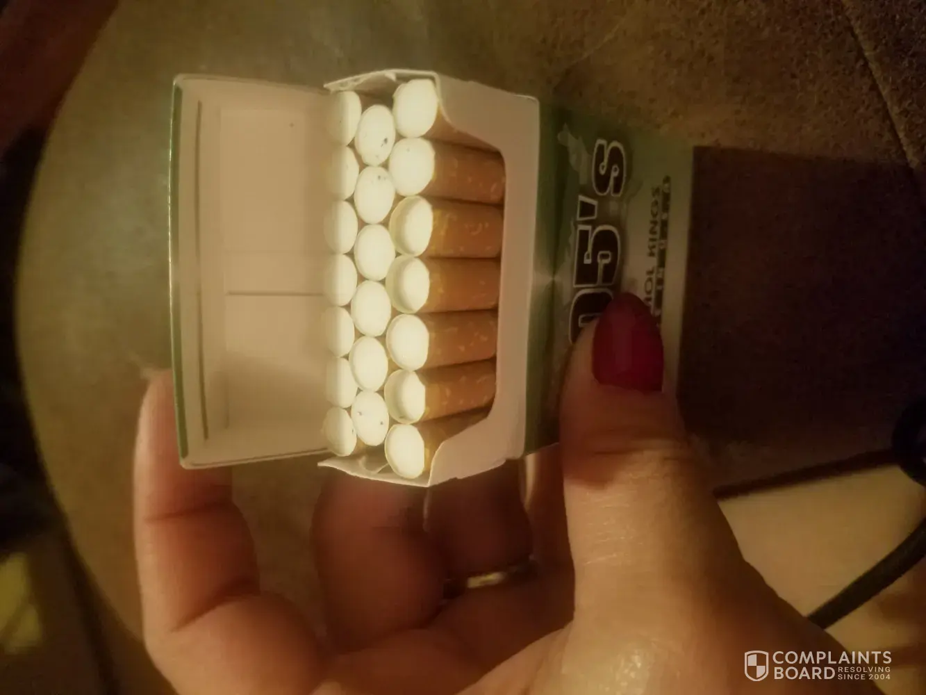 Bought a carton and all of them have the filter papers not properly cut, they are an eight of an inch longer than the filter and the tip of the cigarettes are smashed like they have been previously packed and bent. All of the 10 packs are like that. Ridiculous. The also taste staple Lord knows how old they are and I dont understand why because they were sealed. Quality control did not exhist on these consecutive 10 packs. And there's no refund on tobacco. So who do I talk to?