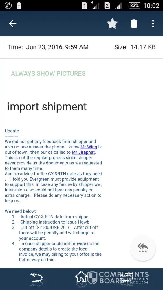 Estamos negociando com eles a mais de dois meses somente fazendo os pagamentos antecipados e de diárias de container que até o momento nunca existiram.