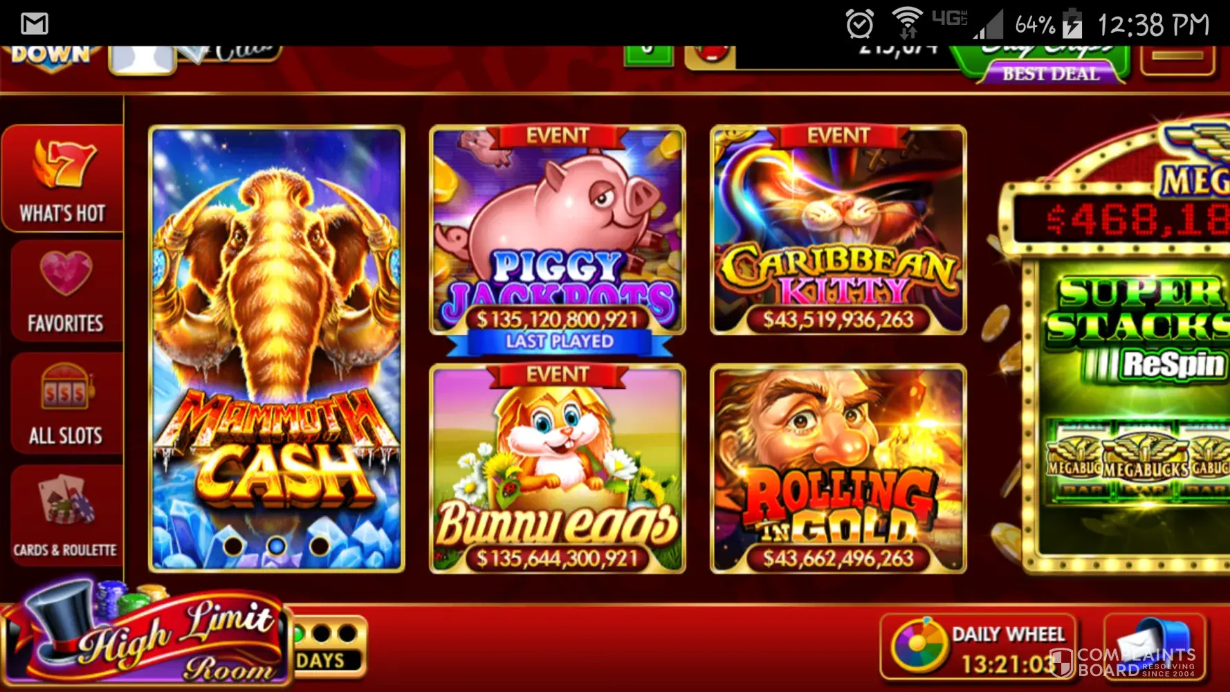 I attempt to play the megabucks. When I place a bet, the money is withdrawn from my holdings and then the game freezes. Sometimes, if I tap the screen the games will slowly move to complete a spin. However, tapping the screen now has no effect. I restarted the game expecting to see it working and found that the withdrawn money is gone and the game did not work. When I see the progressive jackpot building I assume the game is working and bet again only to have the game freeze and take my money. Last 2 bets were for $1M each. Progressive jackpot is building but slot will not spin. The Auto and Spin/Skip buttons are grayed out. Why does this game suddenly not work? My current account balance is $309, 244, 787. It was $311, 244, 787 before the two bets. As I wrote this the game Sent a "still playing?" message.