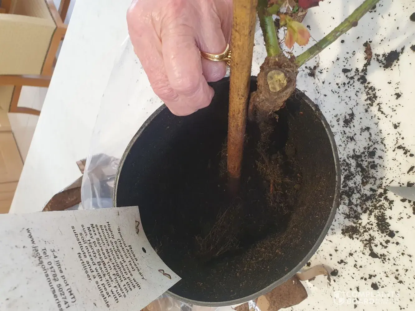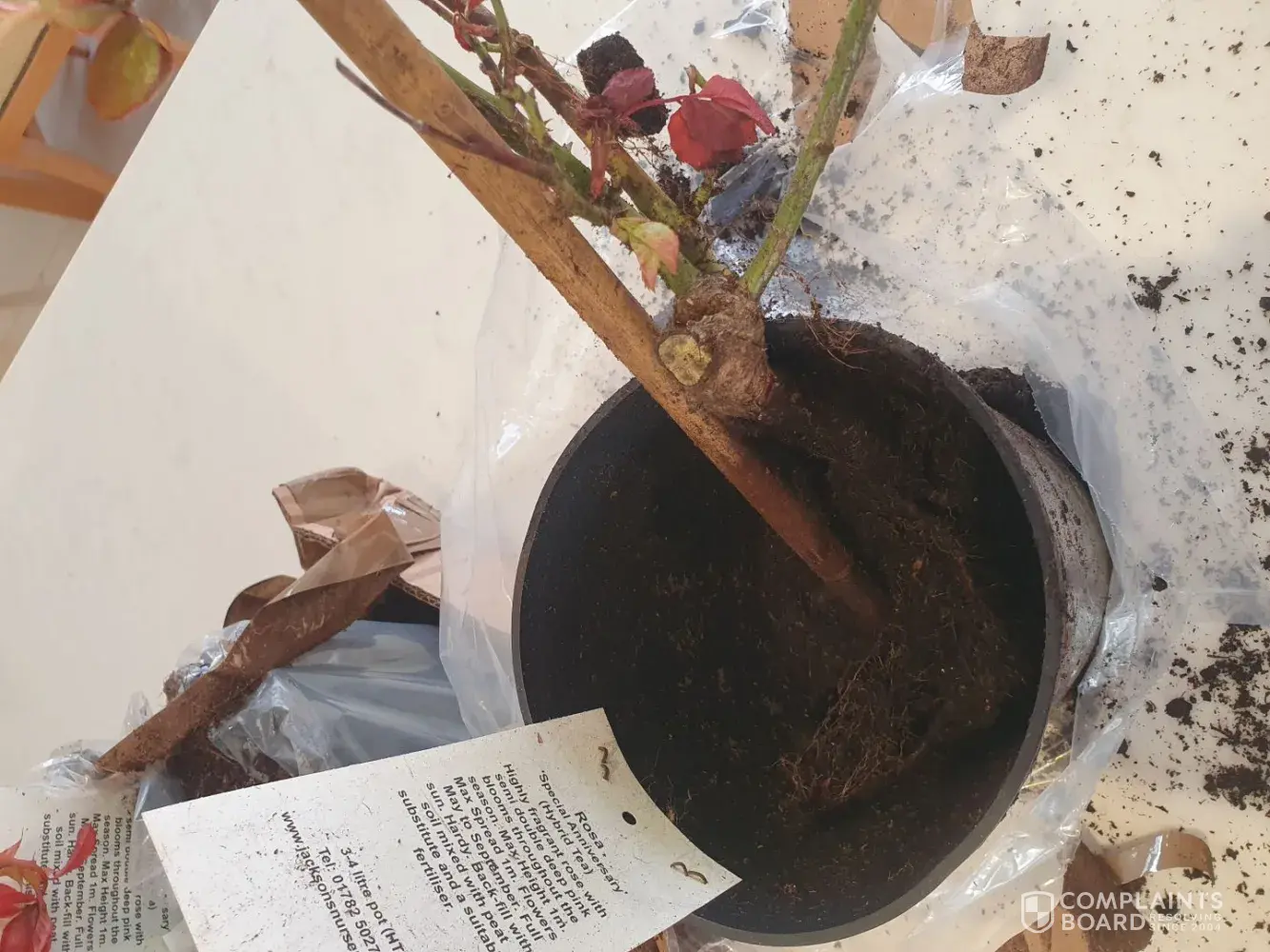Three roses were delivered a week late and in very poor condition. We were here but The delivery man didn't even bother to ring the doorbell? I have enclosed photos. One pot had virtually no soil as it was all at the bottom of the box. One other pot is split and damaged. One rose may survive (?), but I am not impressed at all. The soil is dry and...