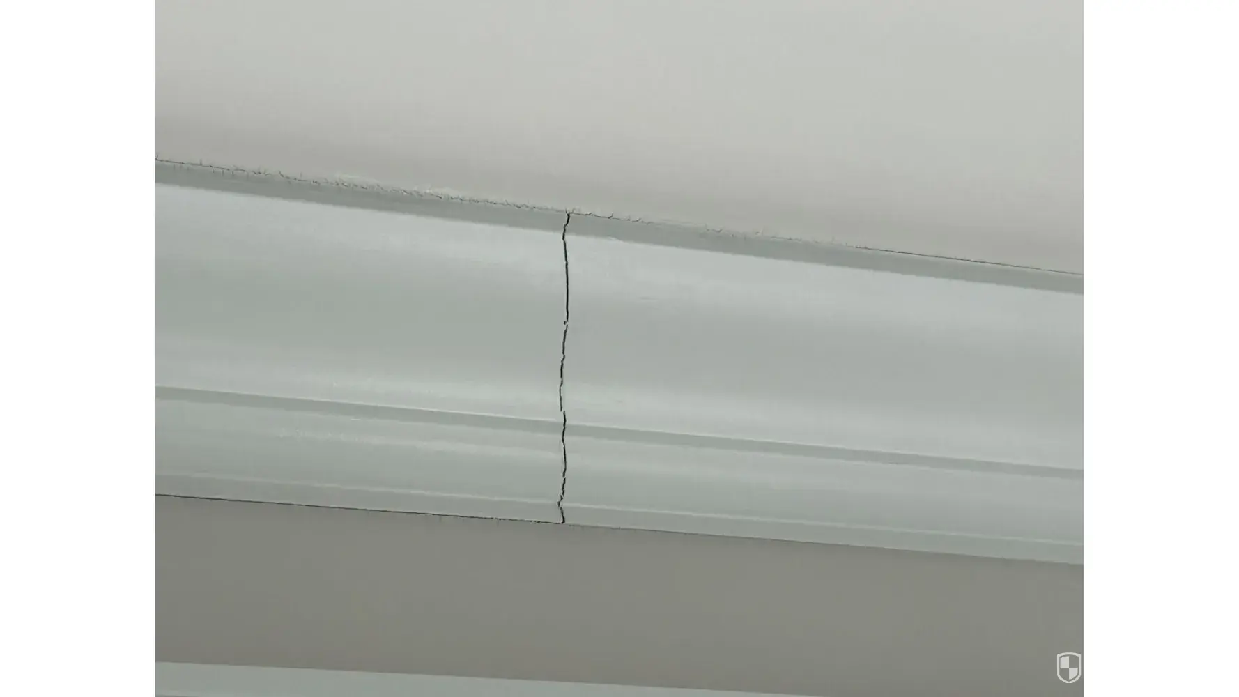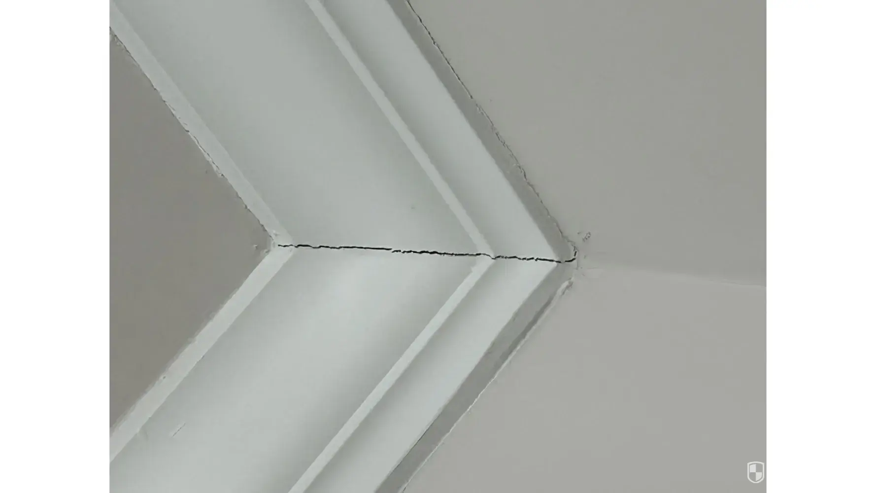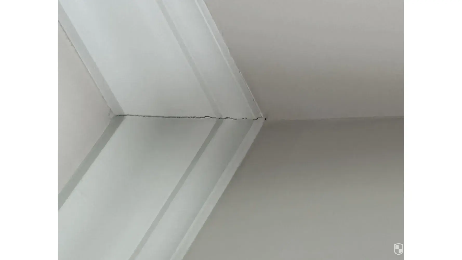 1. The corners of the crown molding on the ceiling have separated and show cracks.