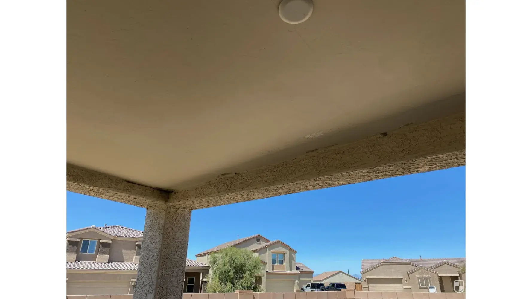 We moved in to our house August of 2019 and although reported initially, DR Horton never got back to us to resolve the issue. Back porch overhang area poorly finished. Unfinished drywall on where the top part of the wall meets the ceiling — there are visible gaps. This was first reported to the builder in late 2019 but they never got back to us. We live in Sycamore Vista in Corona de Tucson (Vail), AZ.