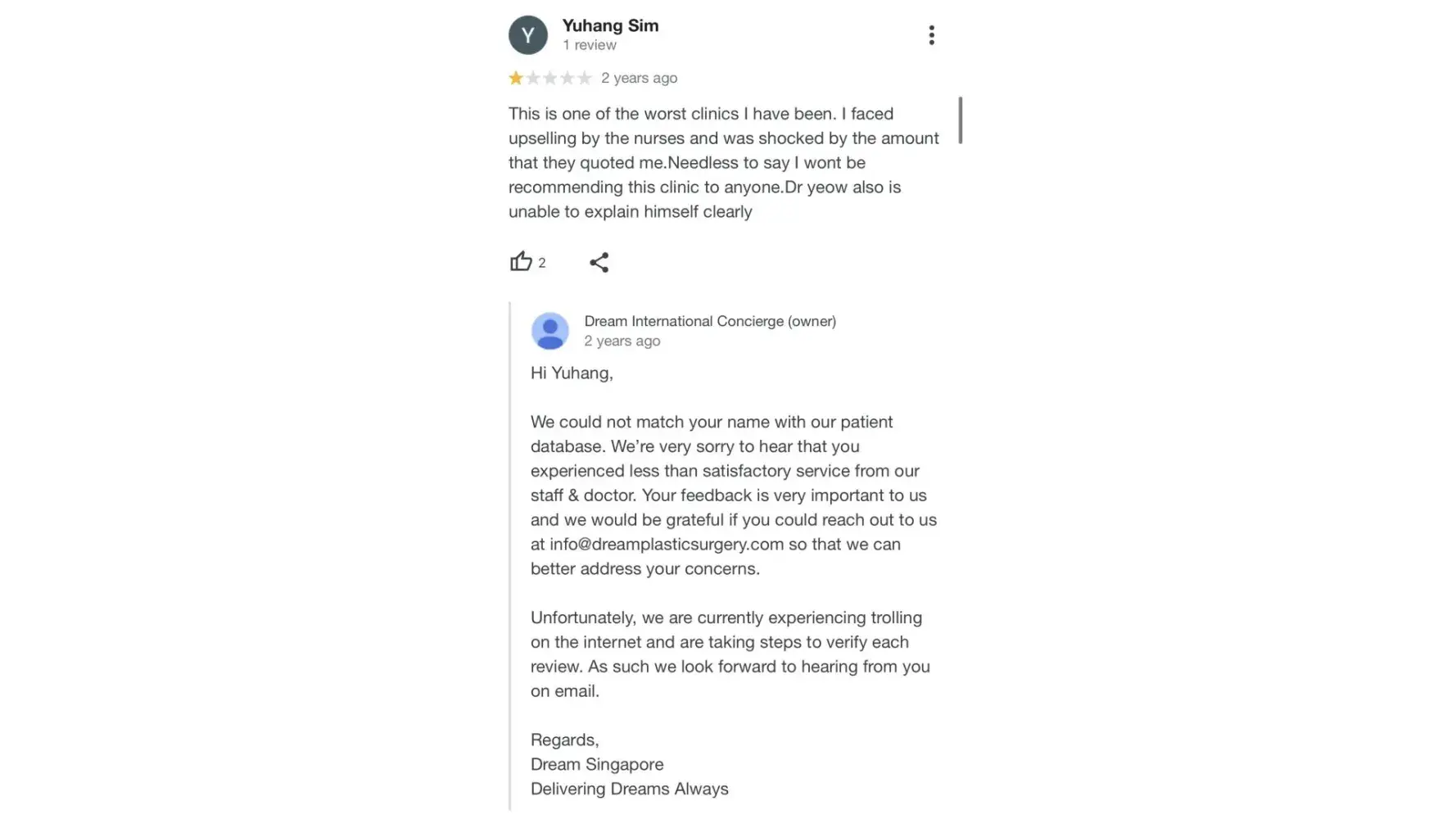 Dream Clinic - They just keep trying to bury their genuine, negative reviews with (clearly) fake ones and have renamed their business listing name to concierge. Strange how they brand themselves as a Korean-ish clinic but cant uphold their korea clinic standards. Overpromises from time to time but cannot deliver.