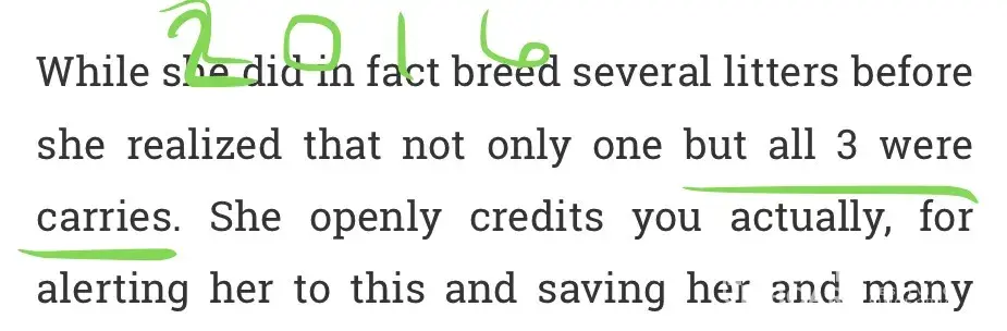 So you had a random HCM death in 2015 according to your website, then you credit a lady who's kitty died in 2016 for calling it to your attention? And then another discrepancy...you say two momma cats were carriers but there were three cats. One was a stud, and you had been breeding them for how many years? Since 2013? Two females and one male, the male whom you could not take to the vet to get tested for HCM because he attacked people and therefore you continued to breed him...The photos below are screen captures from your website, the other gal's complaint and then the person who commented ever so passive aggressively on her post.