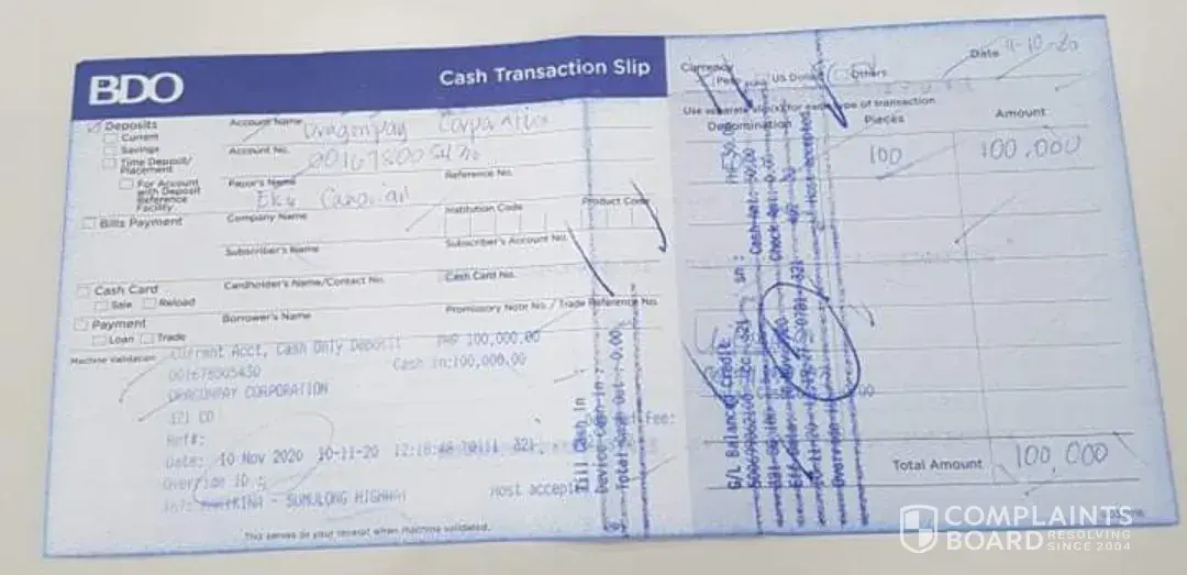 Payments has been made on Nov 10 for 100k over the counter from BDO to hotforex account via dragonpay which has not posted