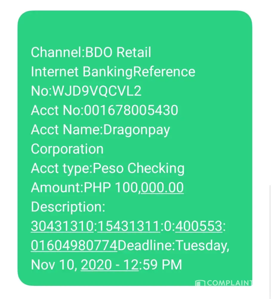 [10-04-2019 12:21:36] [Ivy] Payment made via BDO wont validate. Can you help?