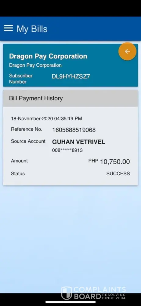Dragonpay Corporation’s earns a 1.0-star rating from 0 reviews and 5 complaints, showing that the majority of customers are dissatisfied with payment processing services.