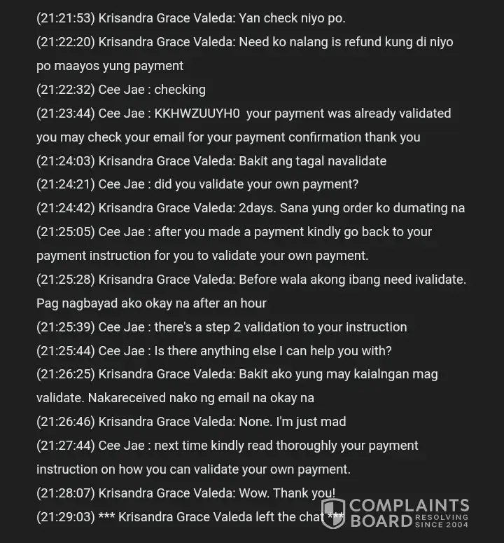 Kindly improve your live chat customer service. CS rep made me wait for so long and never came back. Please refer to the transcript below: