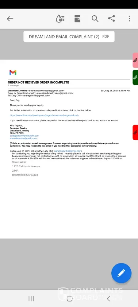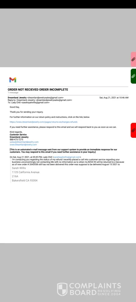Dreamland Jewelry complaints: history and resolution overview