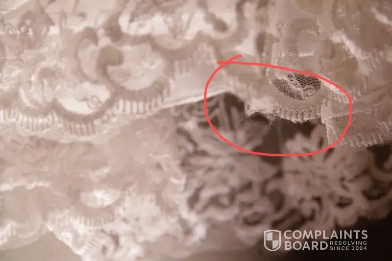 First of all, the lace on my wedding dress came burned in 3 places. Next, despite the fact that I gave them my exact custom measurements, it is nearly 2 sizes too big. The lace is very poor quality and is sewn very crookedly. There are a great deal of lose threads. After contacting the company, I have, thus far, been denied a refund for the price of the dress. I was willing to accept the losses for the price of shipping, but not for the price of the dress. Dressale has asked me to "understand their losses" and has told me they "cannot afford to lose the money on the dress". As a consumer, that is not my problem. As a business, it is their problem. My advice? Do not EVER buy a wedding dress from dressale.com! You'd be much better off going to David's Bridal, where you can get much better quality and still pay a very reasonable price!