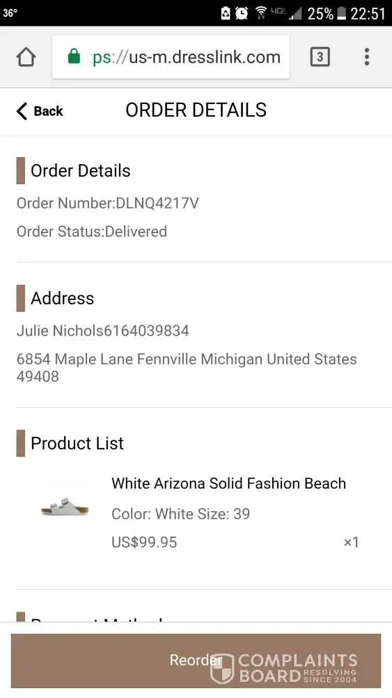 dress never received