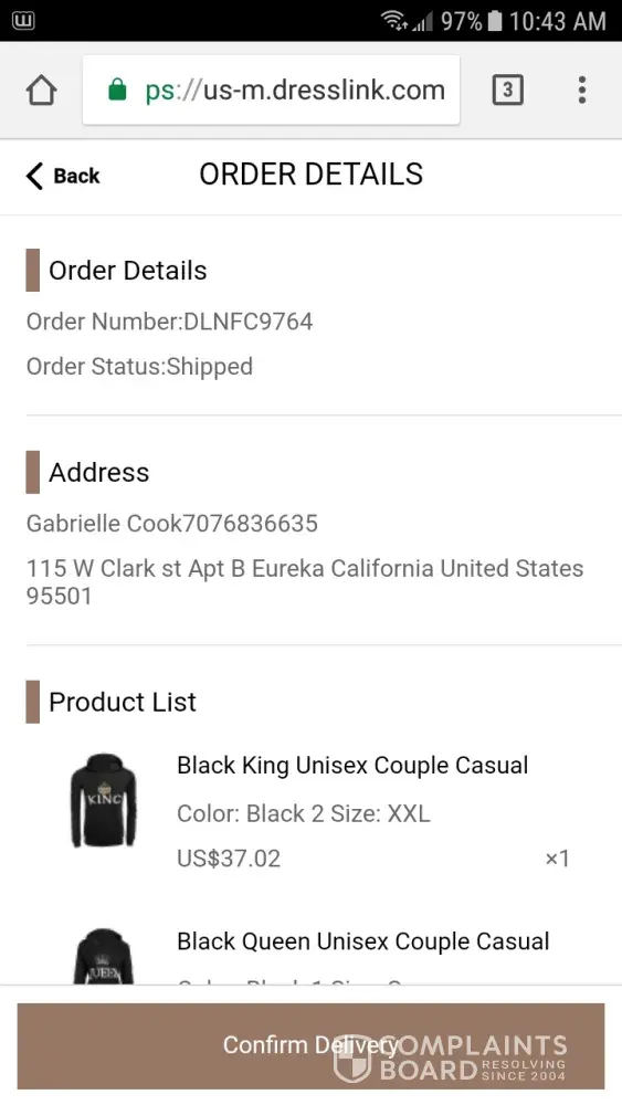 I ordered a dress yesterday and have had no confirmation of the order to my email? I now see that there are a lot of complaints of items never being received. I want confirmation the item has been ordered and an email to confirm when shipped email is [protected]@hotmail.co.uk
