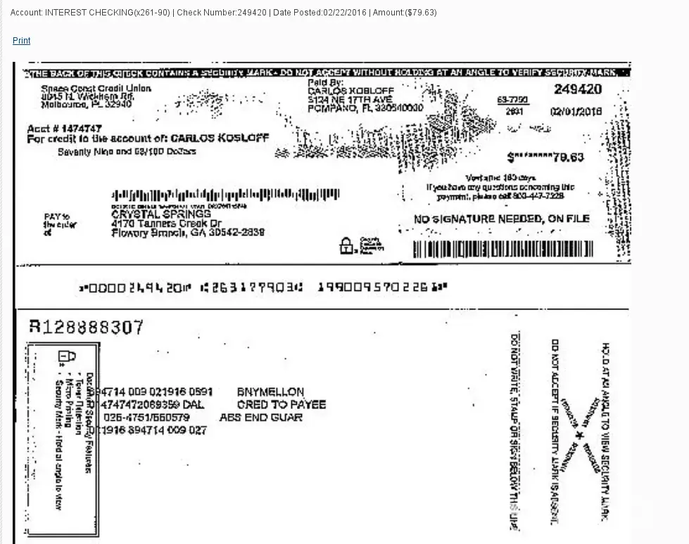 On Feb. 22 the original check was posted and money withdrawn from my account, so I paid twice.