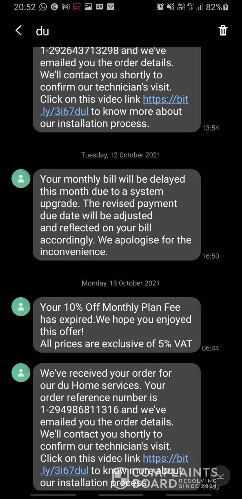- We didn't receive the plan benefits which we were supposed to receive as per the agreement with Du agent and the account manager.
