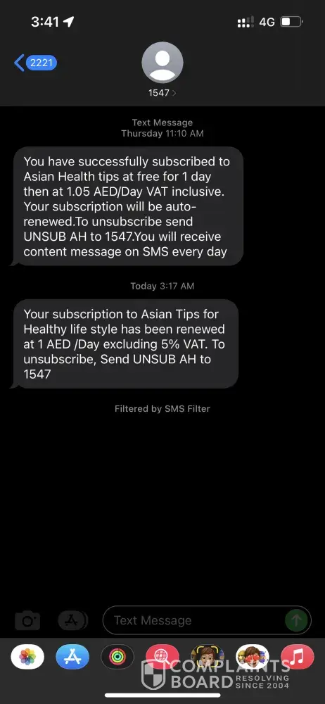 You have successfully subscribed to Asian Health tips at free for 1 day then at 1.05 AED/Day VAT inclusive. Your subscription will be auto-renewed.To unsubscribe send UNSUB AH to 1547.You will receive content message on SMS every day