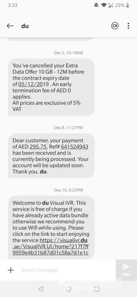 Post which I received an SMS towards termination of contract with zero termination fee.