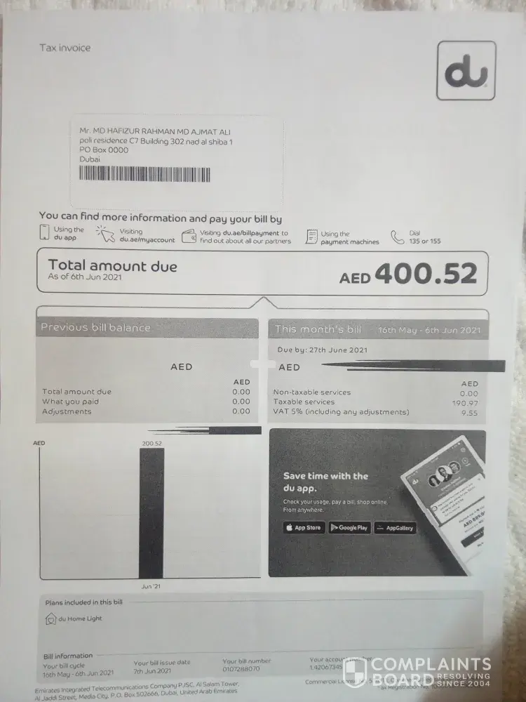 I do not have many friends in Dubai to help me by visiting Du store to solve my problem or pay on my behalf, moreover nobody was willing to extend any form of help during the lockdown, The only person who could help me was stuck in India with me. I did not pay much attention, firstly due to network issues in that village, secondly the fear of pandemic, lockdown, new place, not feeling very welcomed by the locals during pandemic...