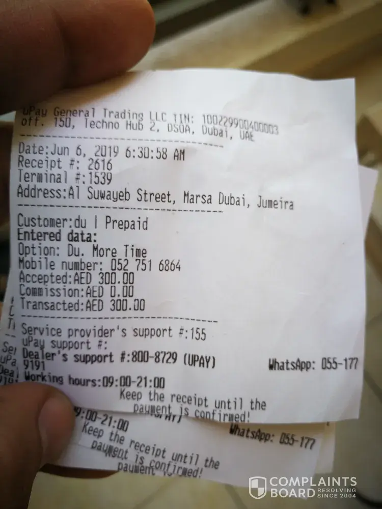 Du account no is 1.[protected], the customer care failed to produce the documents as a proofs for the phone which was issued .