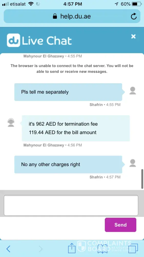 I have just recieved a call to say that Du will wave the 600Dhs break clause that they were going to charge me however this does not take away the upset you have casused in the interim and the incompetence of your staff dealing with this issue.