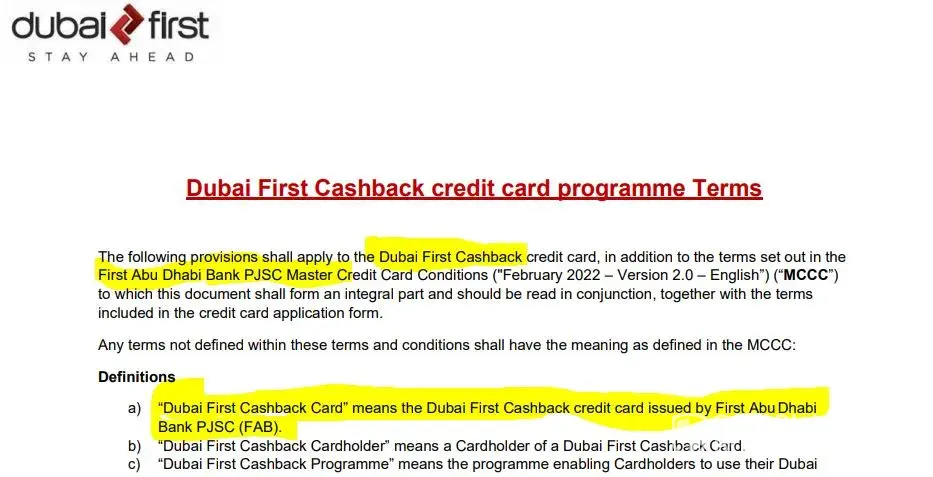 Dubai First Credit Card