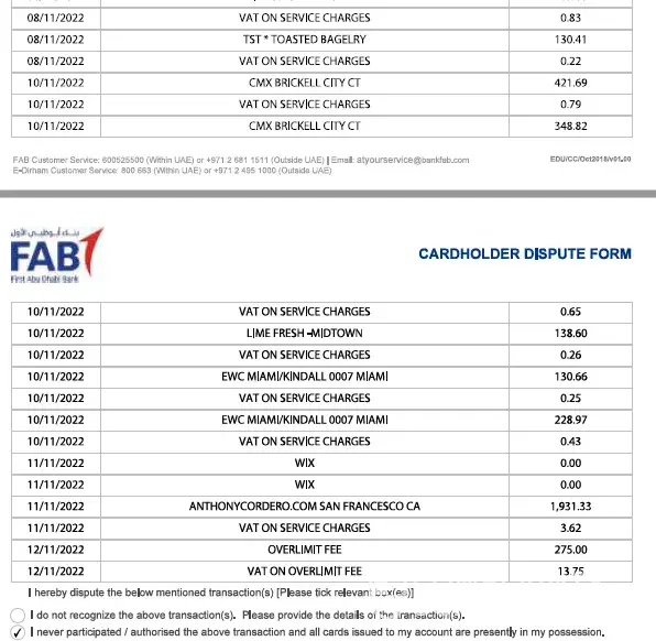 Same incident is happened with me as well. This is organised scam done by Dubai First (FAB) bank. I would like to draw attention of respected authorities of central bank regarding this organised scam