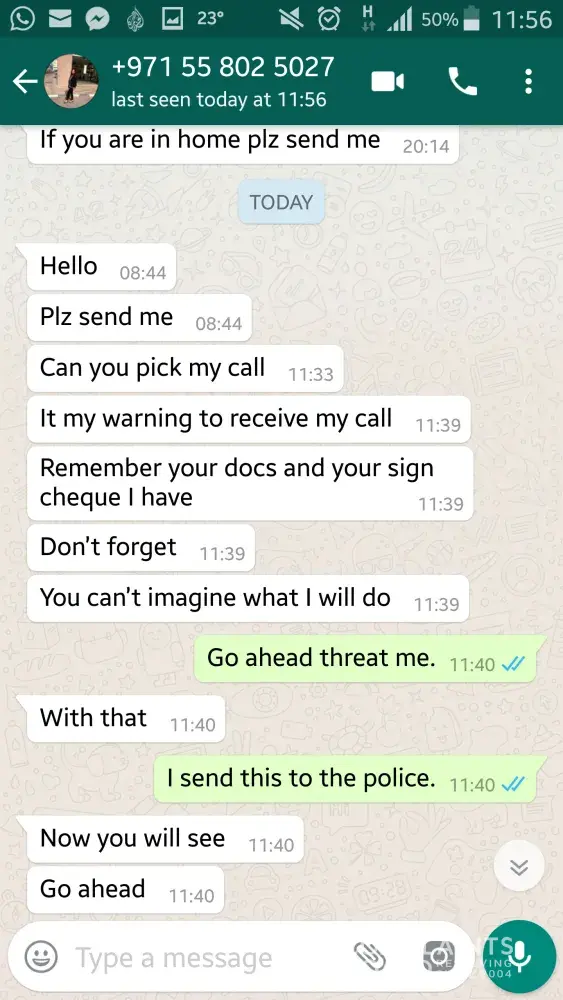 I would also like to bring to your notice that I was not informed about any police case​ filed against me. During my current visit to UAE on 25th November 2017, I was detained at the airport by the authorities and was taken to jail and released after a day. I was humiliated and tortured in the name of a fraudulent case charged against me.