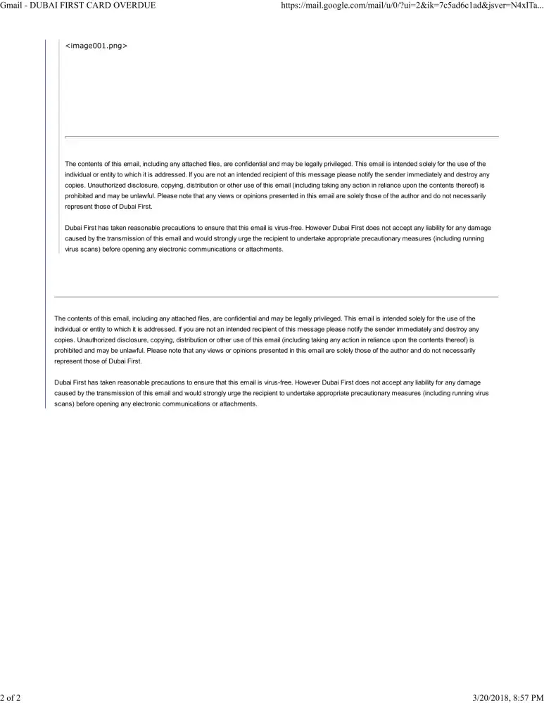 I have a credit card with Dubai First, there are some payments due on the card, for the last 1 year or more i have been paying around 1500 to 1700 dirhams, now due to some financial issues i was not able to pay the amount as minimum payment, this issue is being addressed by the collection team and i am in contact with them.