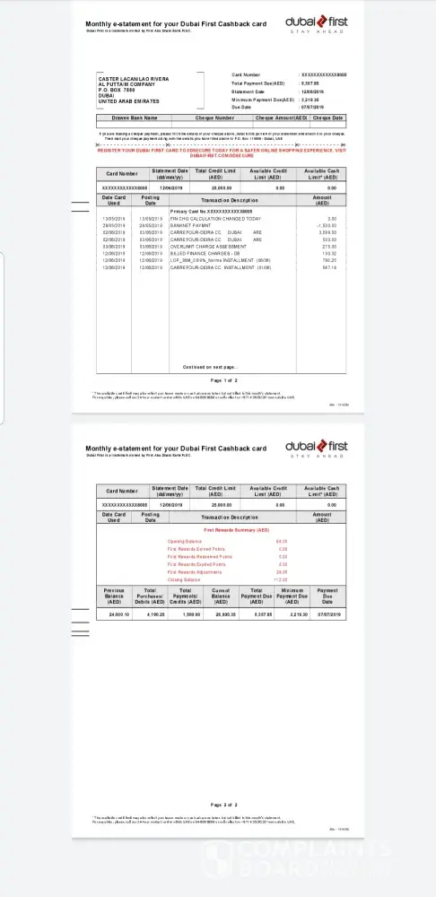 Dubai first is really harassing me financially and mentally . This is the worst card and bank I have ever seen .