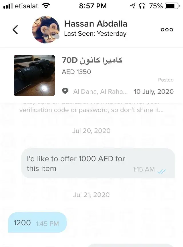 Dubizzle Middle East Cheating not giving camera advance paid
