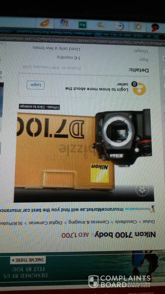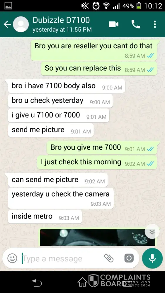 Last february 12, 2018 I made a deal to buy nikon d7100 model to this seller ([protected]), so we meet up around 7pm at palm deira metro station to complete our deal. But the following day I notice that it is different unit as we agreed by the seller. He trick me with the original box of nikon d7100 but he give me wrong model nikon d7000 which is not our deal is, I send him message and picture of unit telling that he give me the wrong model and he said maybe he made mistake because he has also another camera body, so I told him to replace the unit or return my money because this is not deal we agreed.