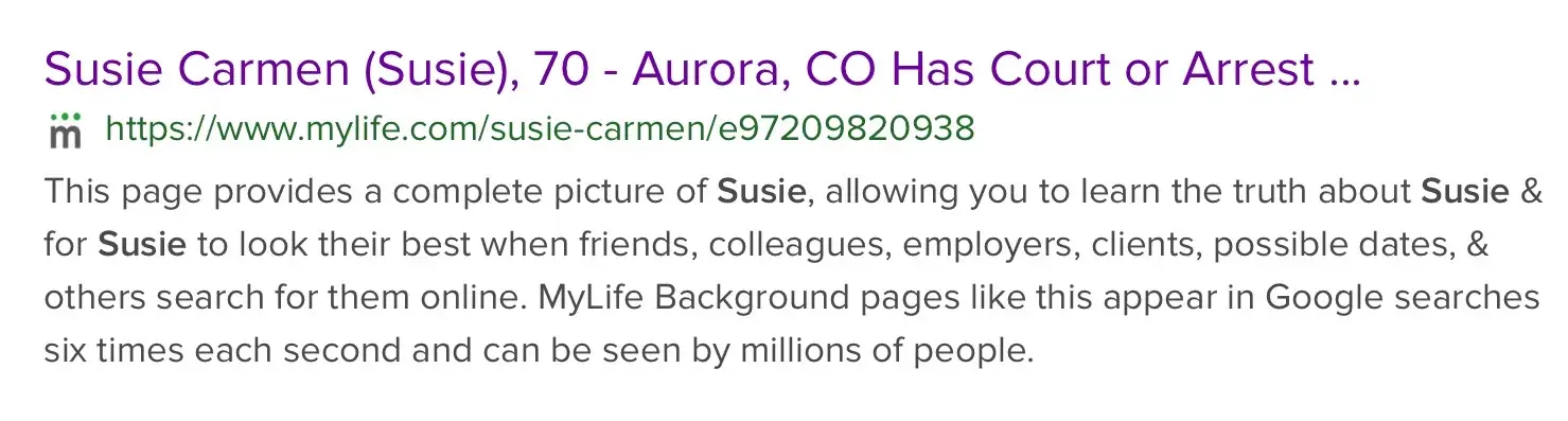 MyLife took “the page” down BUT this bad and erroneous info still comes up on duck duck go. I have never been arrested or been in trouble with the law. Please delete ASAP. I just called two reps from My Life. Said to contact you. Hope you can see last photo. First 2 were in dark mode on iPad.