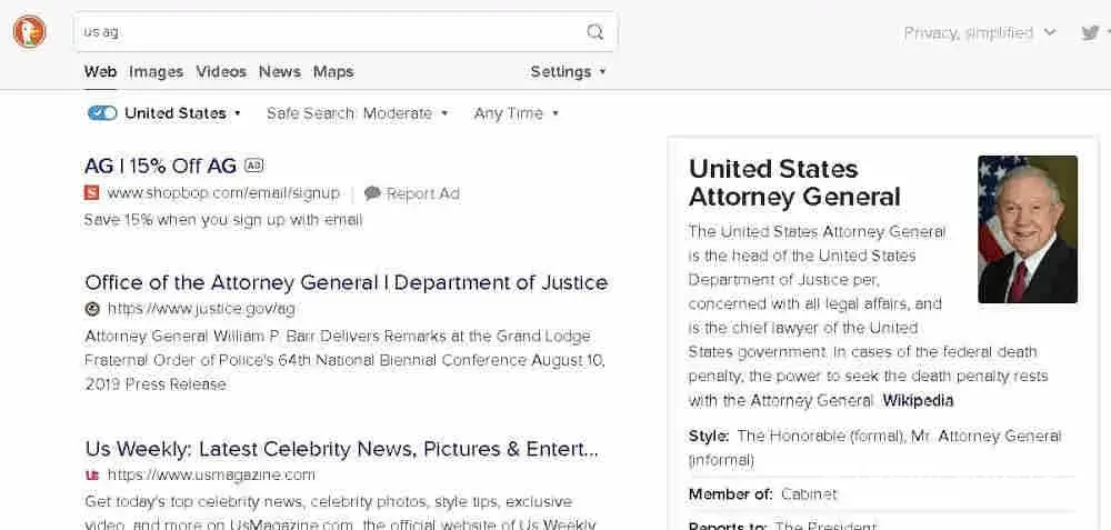 Search is made of DuckDuckgo searc United States.