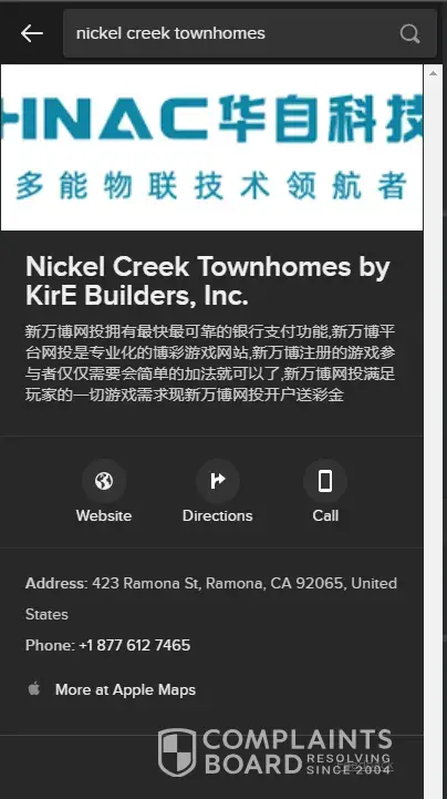 Hi there, I work for a real estate developer in the United States and upon viewing one of our communities on the Apple Maps function of Duck Duck Go, there appears to be foreign language & Images posted on the business address. When viewing this same address or business location on Google Maps this is not the case. I would like to have this foreign information removed from the duck duck go apple map function as it is not permitted by the business owner or developer (KIRE Builders).