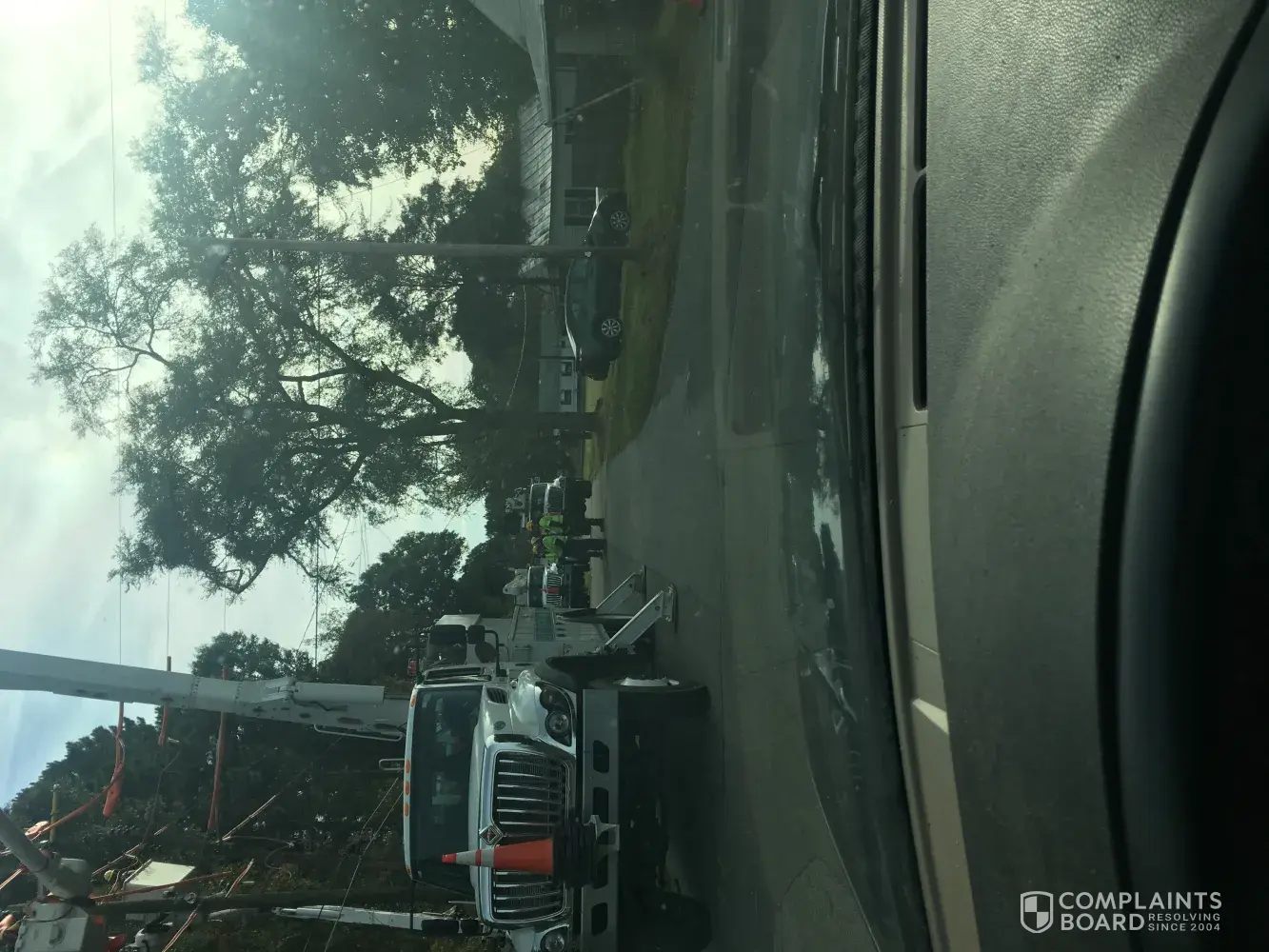 Mon Dec 10 Aprox 30 mins later Duke Energy came by inspected damage saw main feed conduit broken and disconnected he power was in the middle of cooking and needed to shower. I asked one of the workers what was required to get it back on. He said we needed to have the conduit replaced. I asked once it was what we were to do, who to call? He said I could call Duke Energy.
