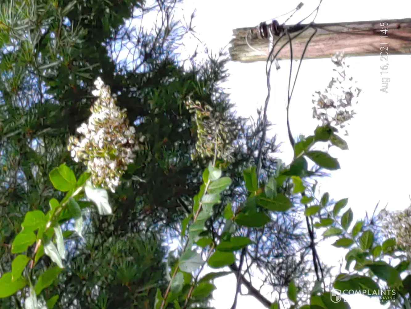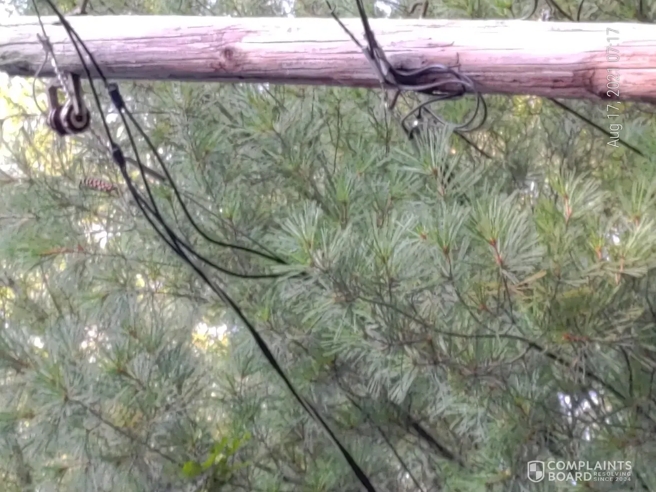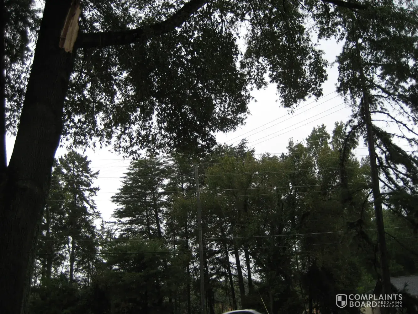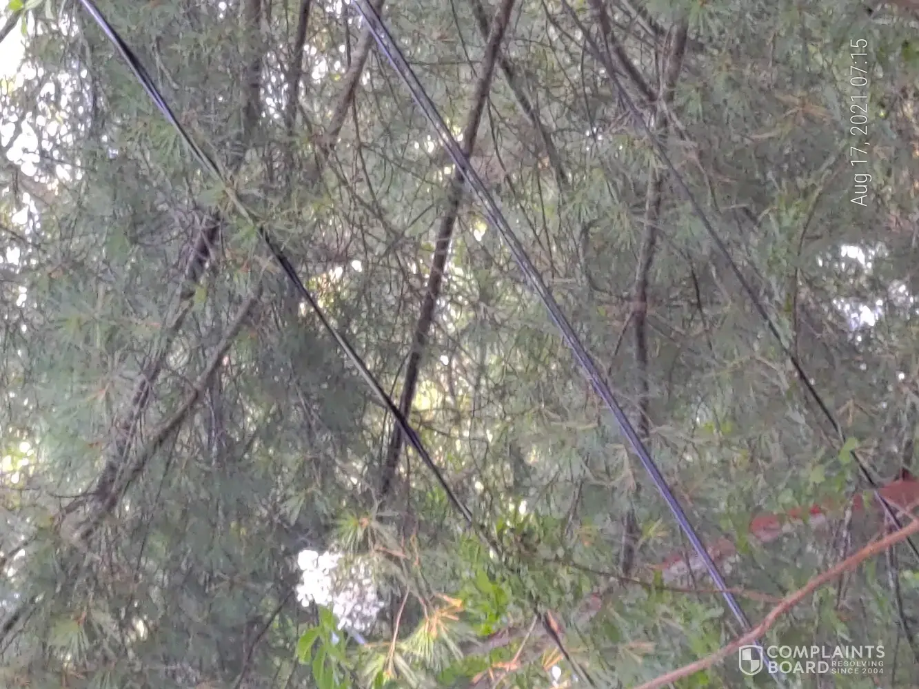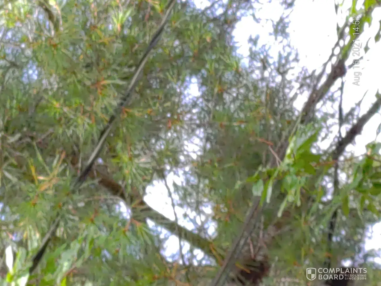 16 August 2021. This year it is getting bad. A good rain and wind combination and I am with out power. I called and asked not to have the same third party come out. He came anyhow. He left a piece of paper laying on the ground that was wet and soggy. I called him (Kenny @ [protected]) and he said that there was no pressure on the power line. I looked and took pictures. No, branches are not bending the power line. No wind. I asked him if he measured the force. He said that his training taught him this.