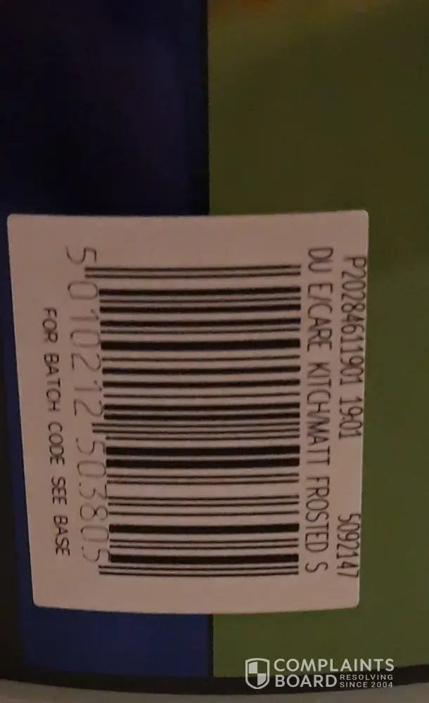 I recently purchased a 2.5 litre of kitchen paint (frosted steel) this was purchased from on line at Wilkinson on the 18th Feb. I have applied 2 coats to my kitchen walls and I'm not happy as it looks lilac colour and nothing like what is shown on the tin. My kitchen look awful and not impressed. I put a lot of effort into this and friends and family saying it looks blue or lilac. Your paint is not the cheapest as I wanted best results but this is a false colour to me.