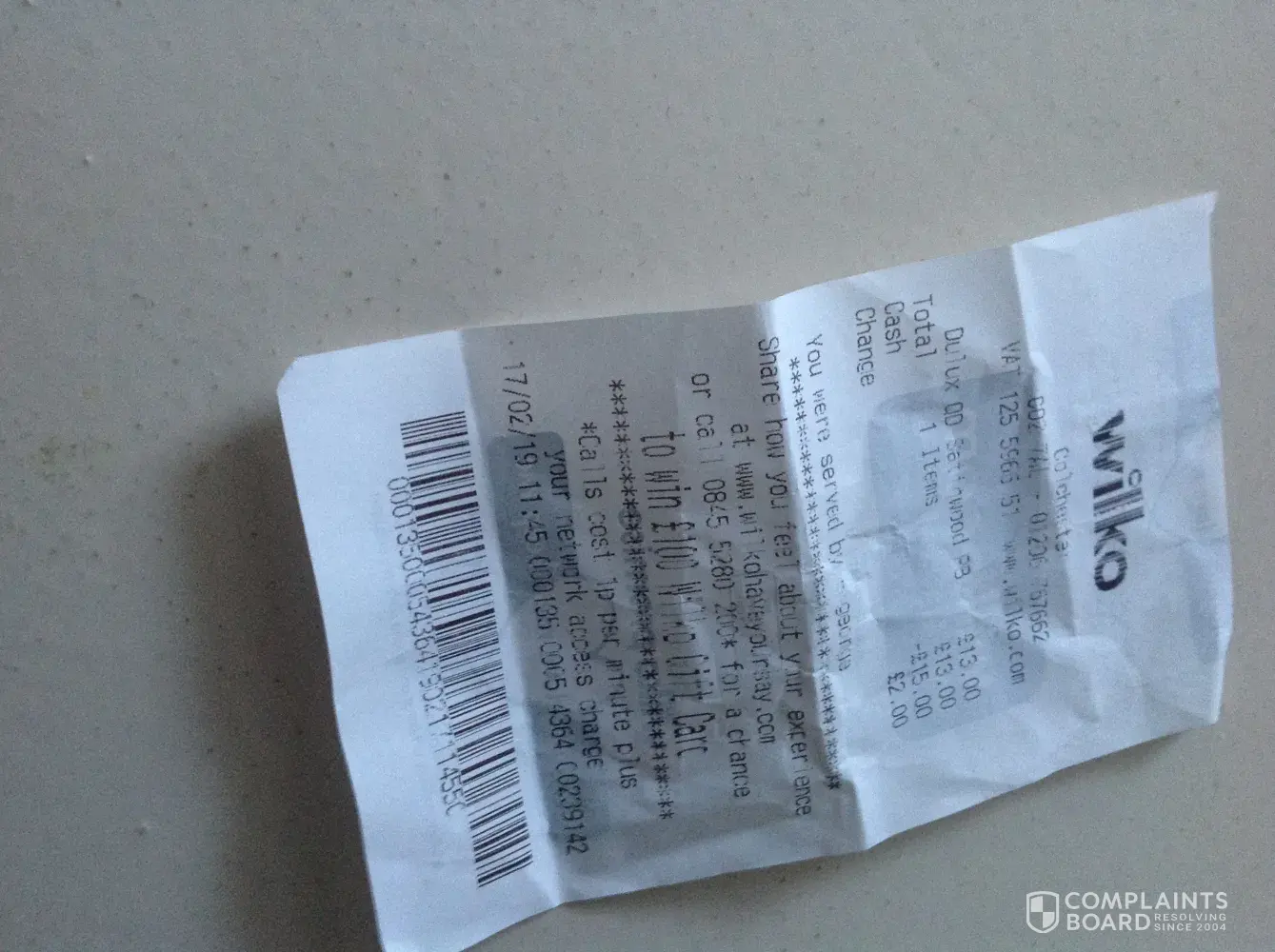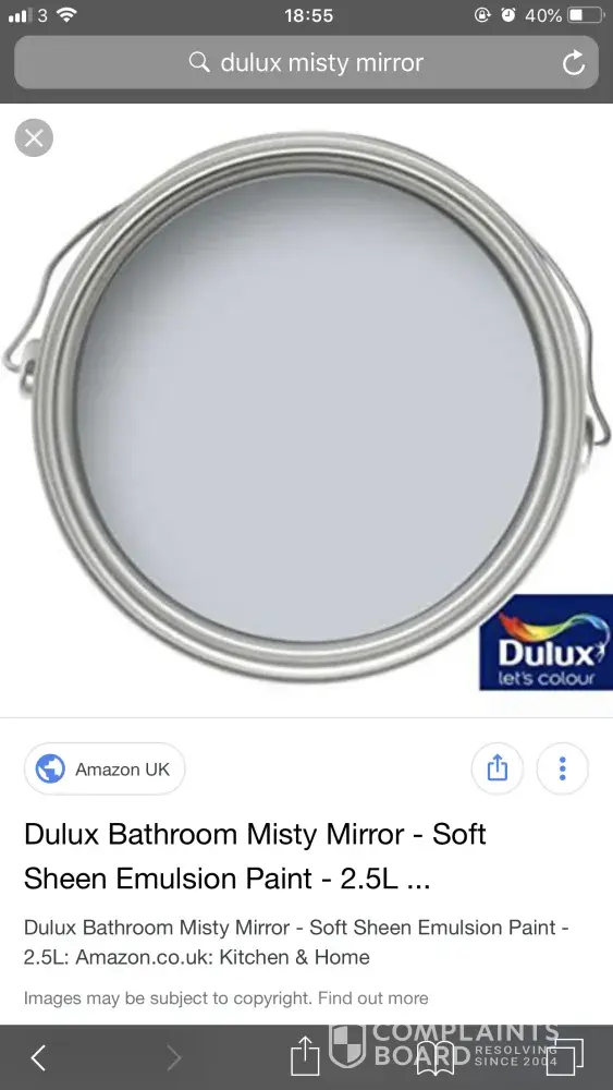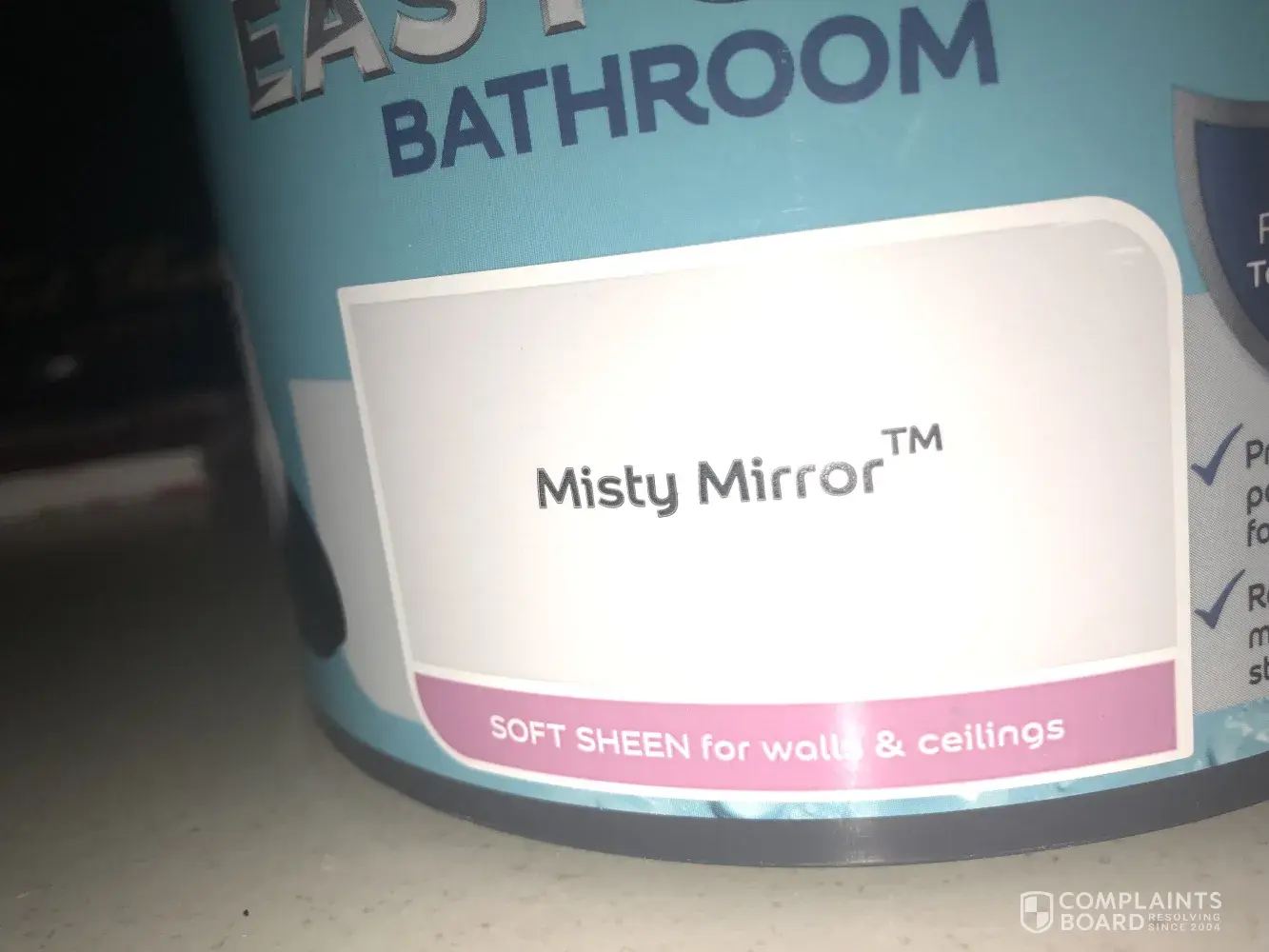I purchase the above paint from b&q last week, I yesterday opened and painted my bathroom with it and am rather unhappy with the result. On opening the tin it was not the colour advertised and is lilac. As you can see by the pictures attached this is not a true reflection of the colour advertised and I have had to purchase a new colour and start painting again.