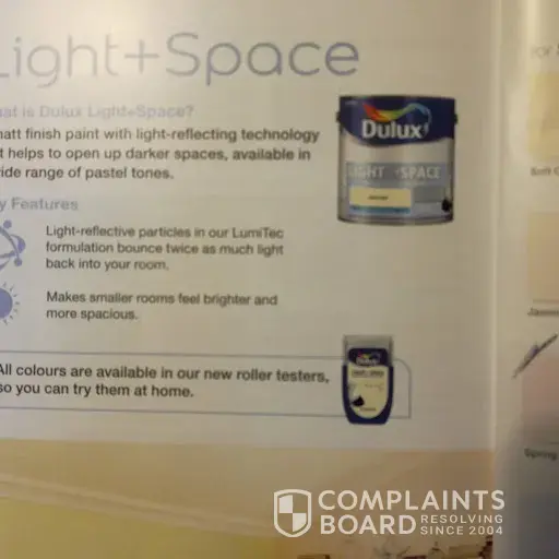 I purchased dulux light + space - spring rose color 2.5 l at twice the price of the normal matt paint. I purchased this paint on the understanding that it would make the room feel brighter and more spacious as indicated in the catalog described under key features. I was greatly disappointed with the outcome. It was no better than the normal paint I had used before "blossom white" a shade closer to this paint. There was absolutely no brightness in light, nor did it make the space seem more spacious. The light - reflecting technology described in the catalog does not justify the price as there is no difference between the normal matt paint and this so called light +space technology paint. I do not know about the other colors but would certainly never buy this twice the price paint - waste of money could have been used to paint another room