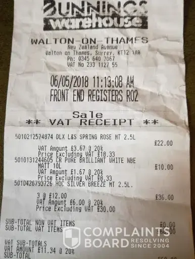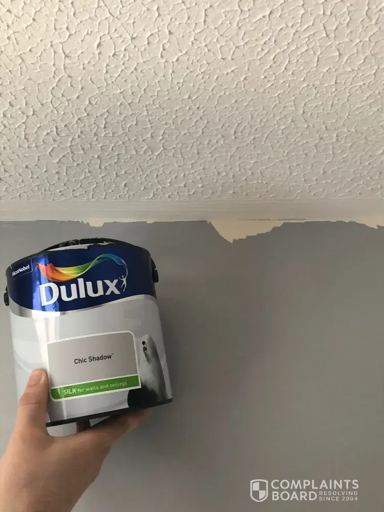 We now are at the point of changing the paint again to the normal Matt emulsion which we have just purchased in malt chocolate and feel that we should be reimbursed as a gesture of goodwill by yourselves for all the inconvenience and frustration that this has caused us.