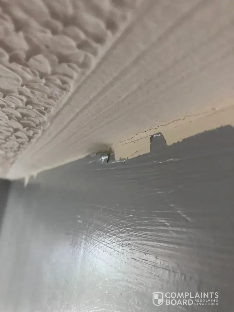 After this had dried it was just as bad, so we went and bought another tin and tried again and again it dried the same. So after buying another (3 tins of paints in total) 1 x 5litre and 2 x 2.5litre tins and the end result was just the same we are now at the end of our tether and wished we had never started.