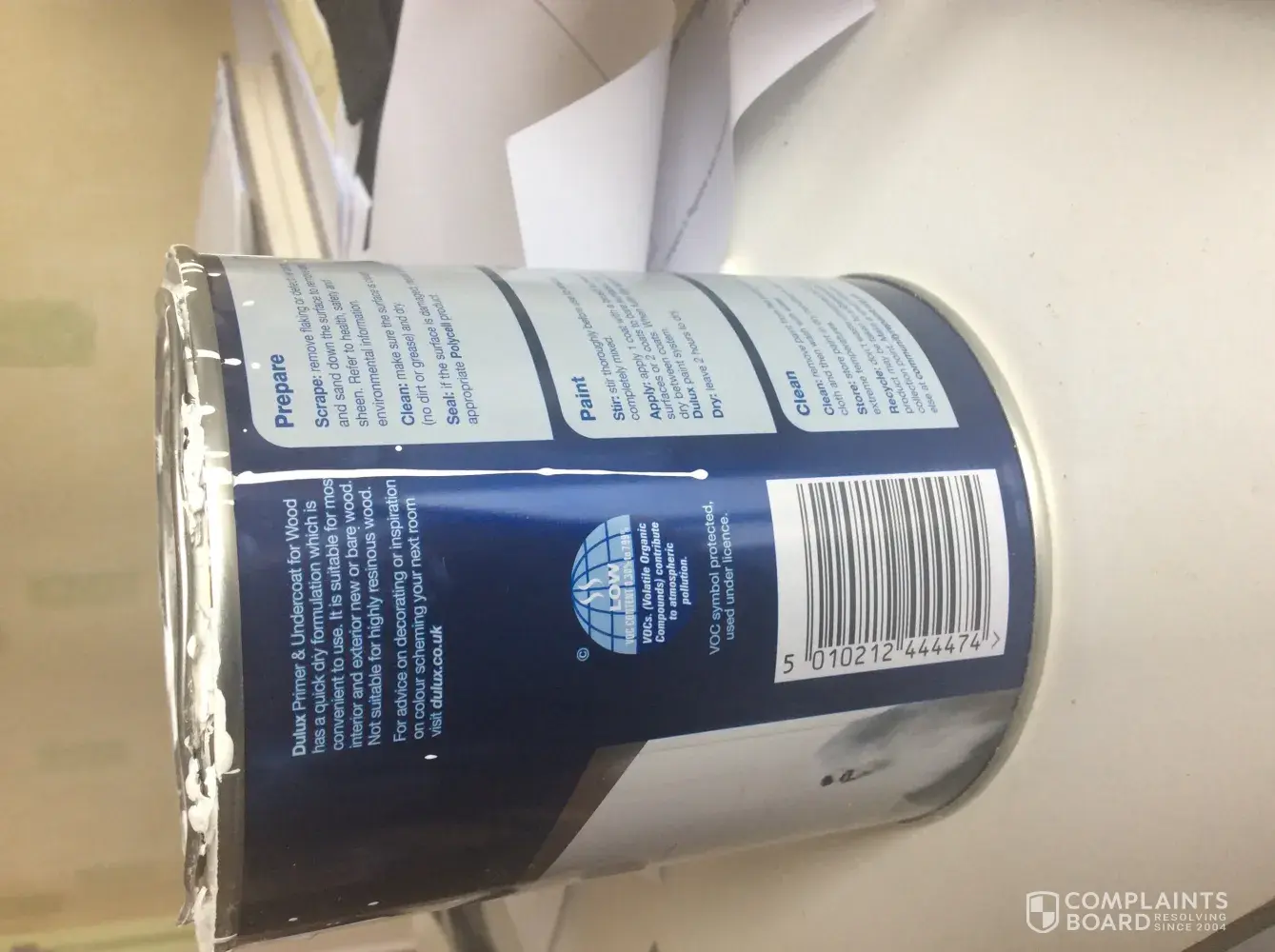 I am writing to you with regards to a tin of Dulux Primer and Undercoat that totally failed to do what it said on the packaging.