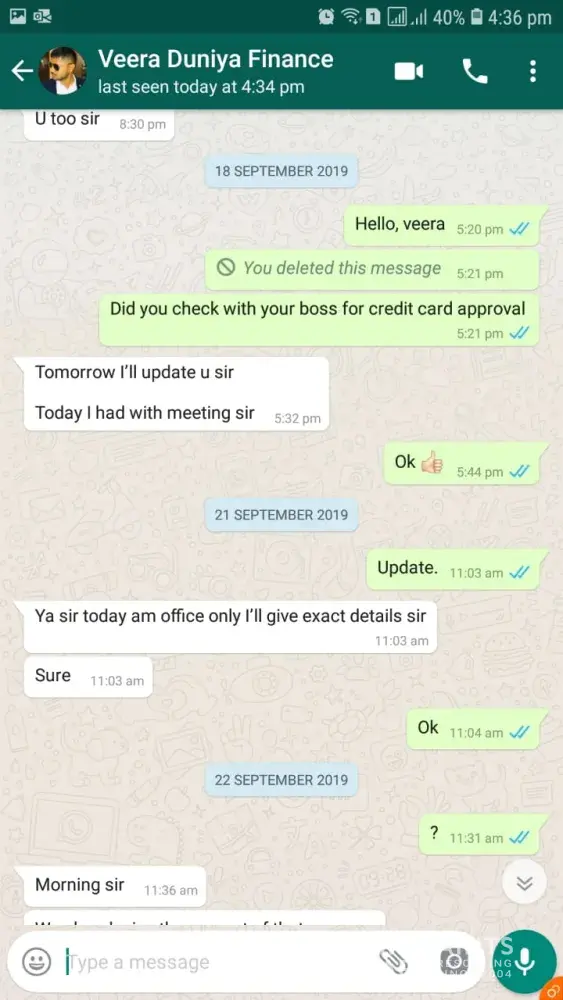 i also attached some screenshot of an executive conversation with me that he is saying you will get the credit card but today he called me and said you are not eligible for a credit card for the next six months.