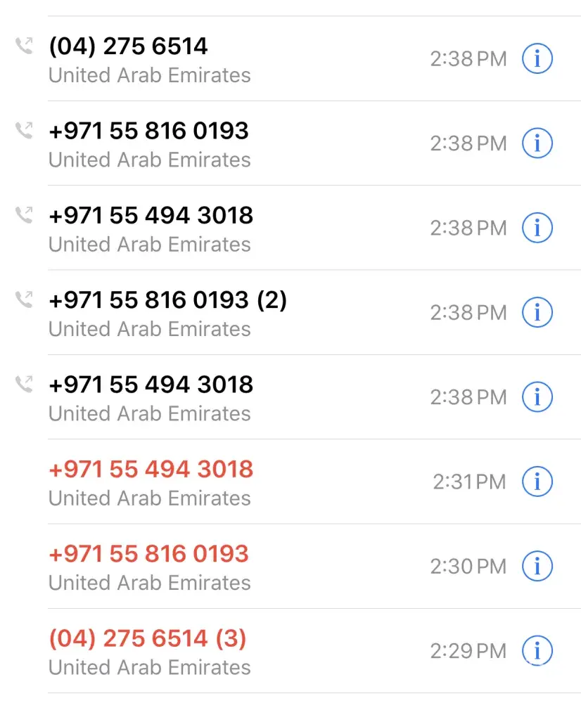 currently am getting the calls from Mr. Mohammed through different mobile number and through different landline numbers which had never appeared to be Dunia Finance number.constantly he is calling me through this numbers, it is supposed to be informed to your legal department and to the local police to safeguard from any possible fraudulent or scam