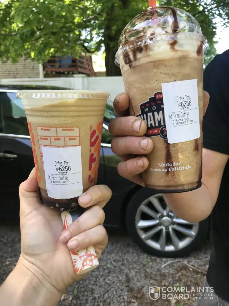 We ordered two frozen coffees both mocha one with whip cream one without, when we got our frozen coffees the small looked like it was not made in an Oasis like they just mixed it themselves. The mocha swirl was on the bottom of the cup and the frozen coffee was the color of a normal frozen coffee without a syrup it was actually extremely light. They also did not give us straws, I went back to ask for a remake and the girl was rude and when I got to the window they served me another mocha swirl frozen coffee without a sticker on the cup and it was not even full. This is not the first time is has happened, but why would you served a frozen coffee that looks correct along side with one that clearly is not made to correct build. I have managed several Dunkin' Donuts and this one is always cutting corners, never mixing the coffees, and Serving cold products.