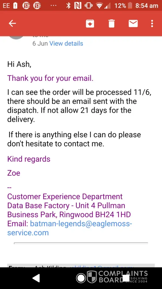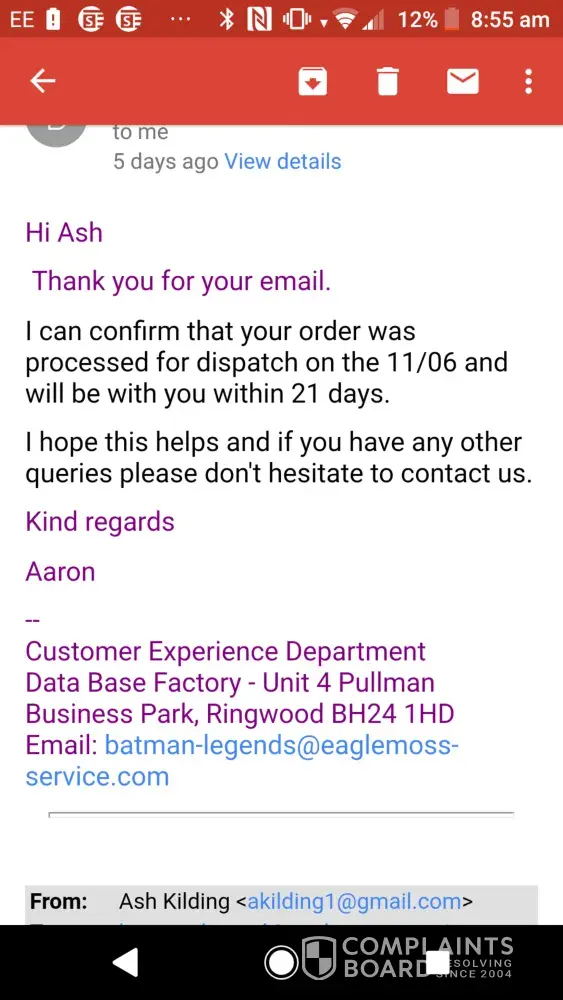 Then I receive an email saying they had been dispatched and to wait 5-10 days for delivery...