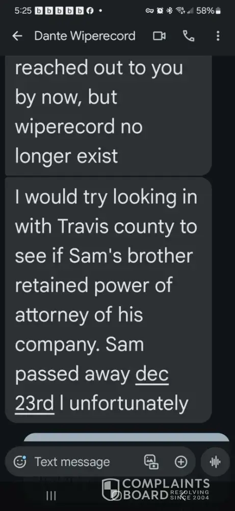 So I paid $2000 to expunge my record, being told money is refunded if record isn't expunged. Fast forward to today (2/18/2024) I received my background check from the fbi. I contact my caseworker to forward my record and out of the blue he tells me whipe record no longer exists and the ceo passed away. I haven't been contacted about my money or anything.