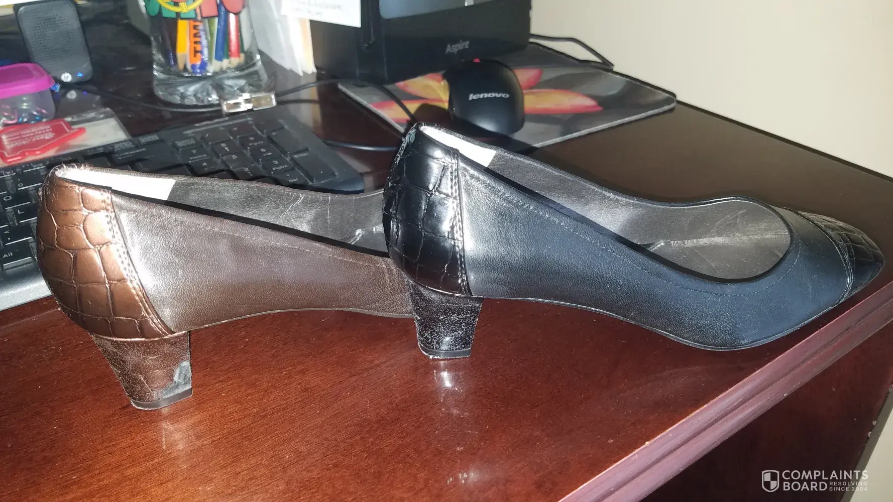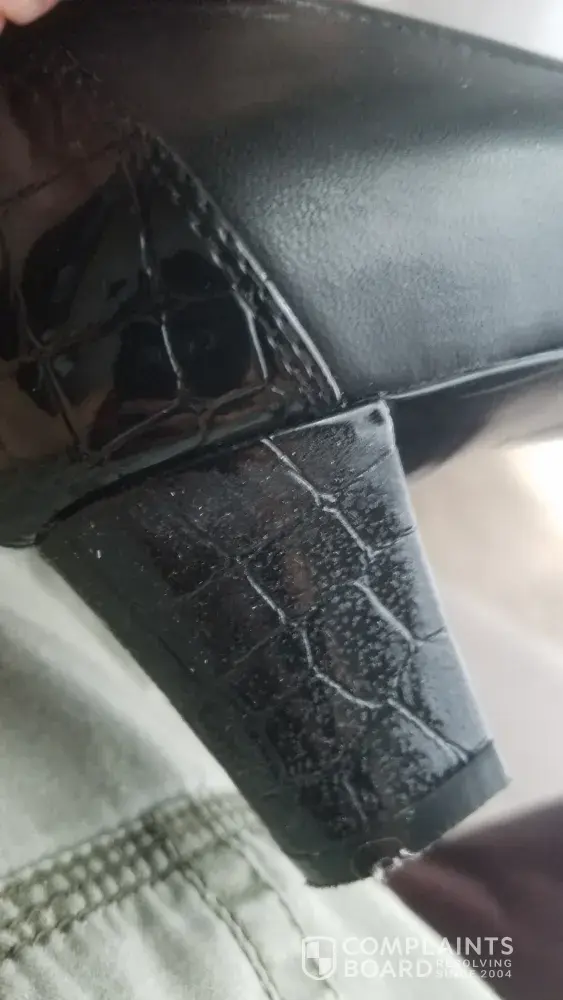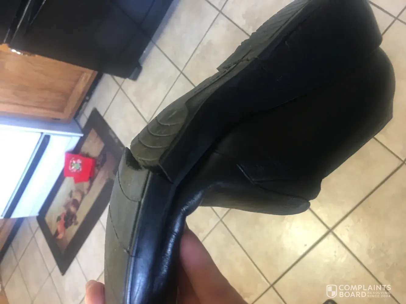 Same experience here. After wearing twice, the second time at my husband's funeral, the left heel disintegrated. I was lucky that it did not cause me to fall:(