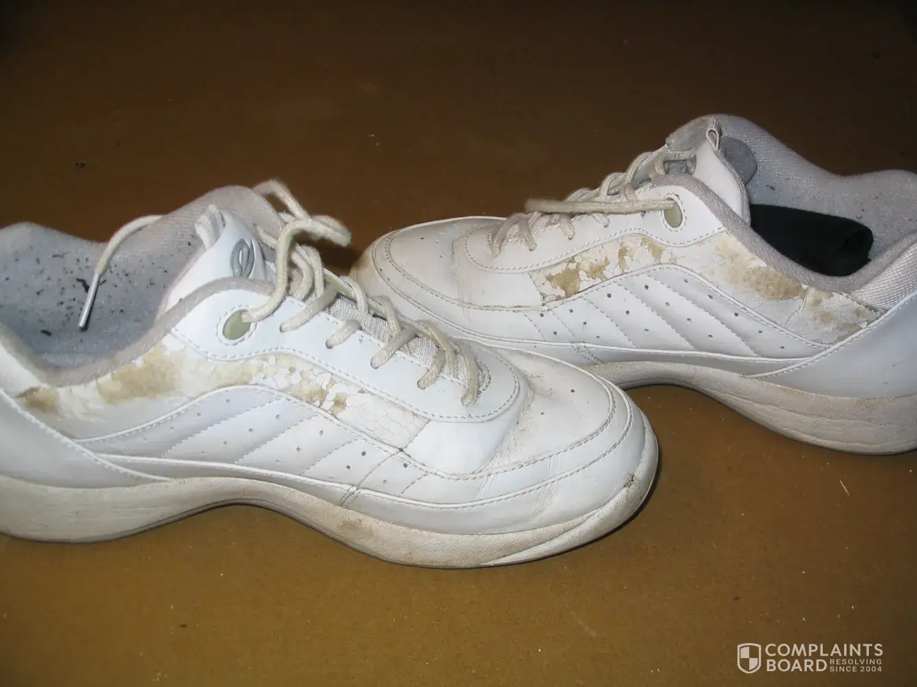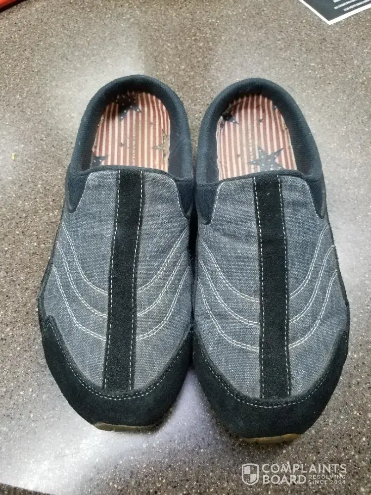 I have had many pairs of Easyspirit shoes and have never had this problem before. A portion of the shoe is peeling off and looks bad. They were made in China. I am attaching a picture. How do I complain to the company?