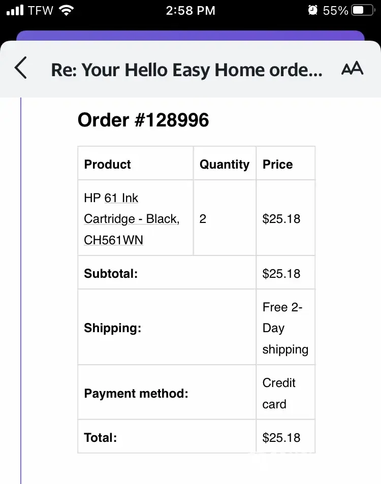 I ordered two HP 61 Black ink on September 30, 2021, for a total of $25.18. On October 7, I asked for shipping status-I never received a response. When I first purchased the items, I thought it was too good to be true. Now, I know it was. Please do not order from this site. It is not a legit business. Thank you.